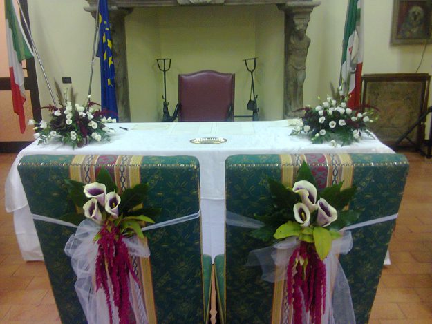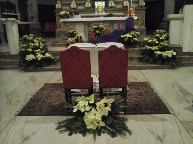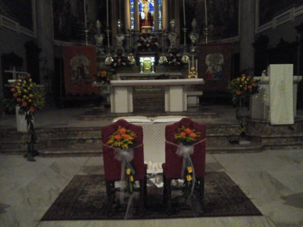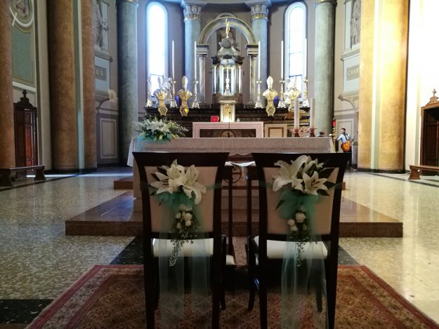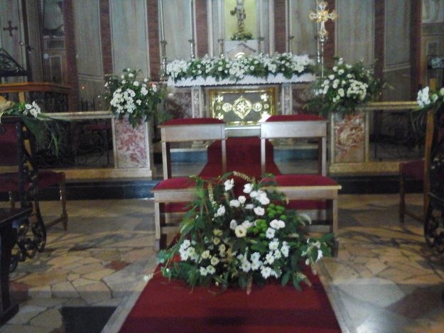 Allestimento floreale della chiesa. I matrimoni sono stati celebrati nel mese di Dicembre, poco prima di Natale. A Paderno Dugnano, la chiesa di S. Maria Nascente è stata addobbata con Stelle di Natale rosse. A Rho, la chiesa di S. Vittore è stata addobbata con Stelle di Natale bianche.